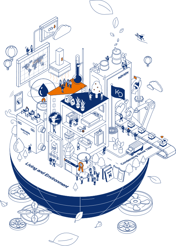 庆东纳碧安(KD Navien)品牌名字来源于Navigator(领航)、Energy(能源)和Environment(环境)的首字母(Navi+En),准确传达了公司的企业愿景:成为能源效率和环境保护的引领者。